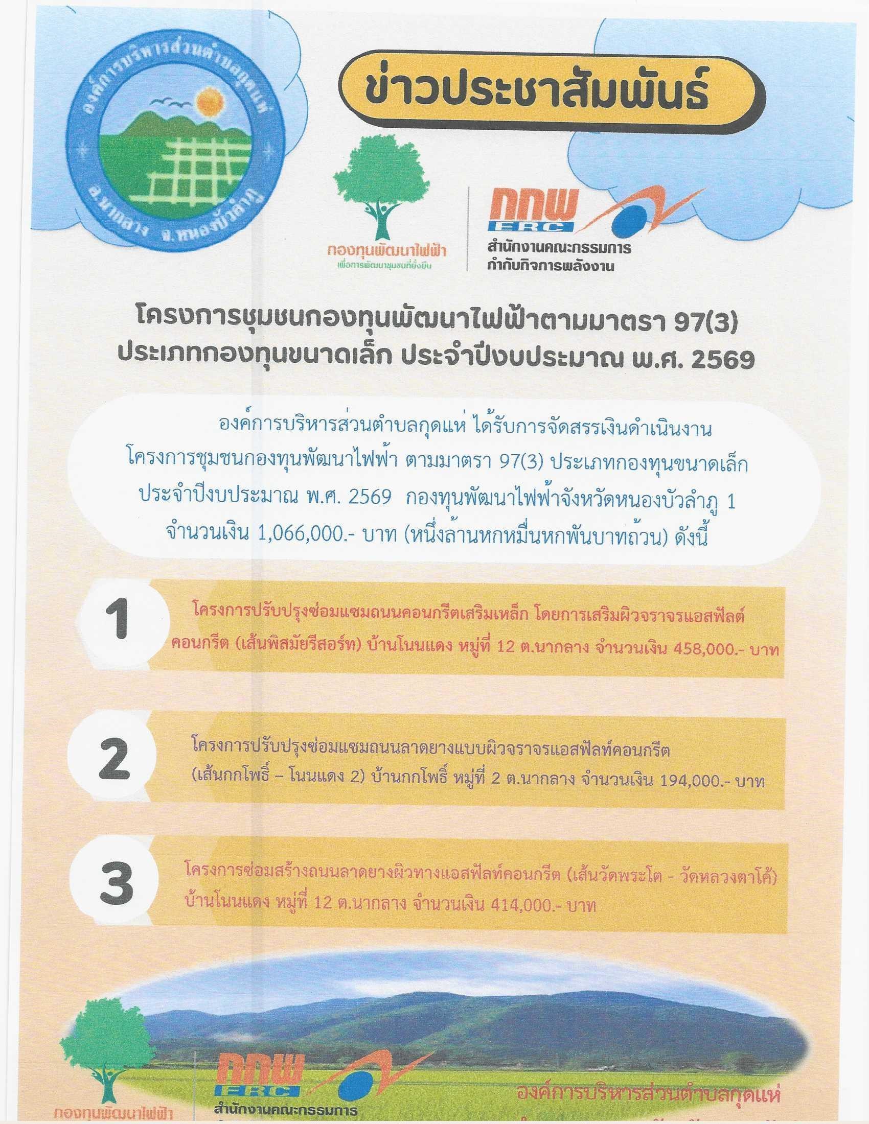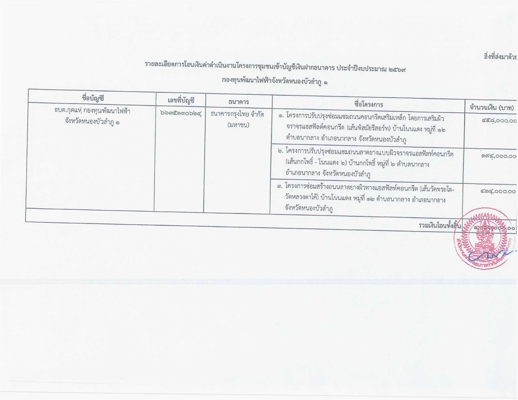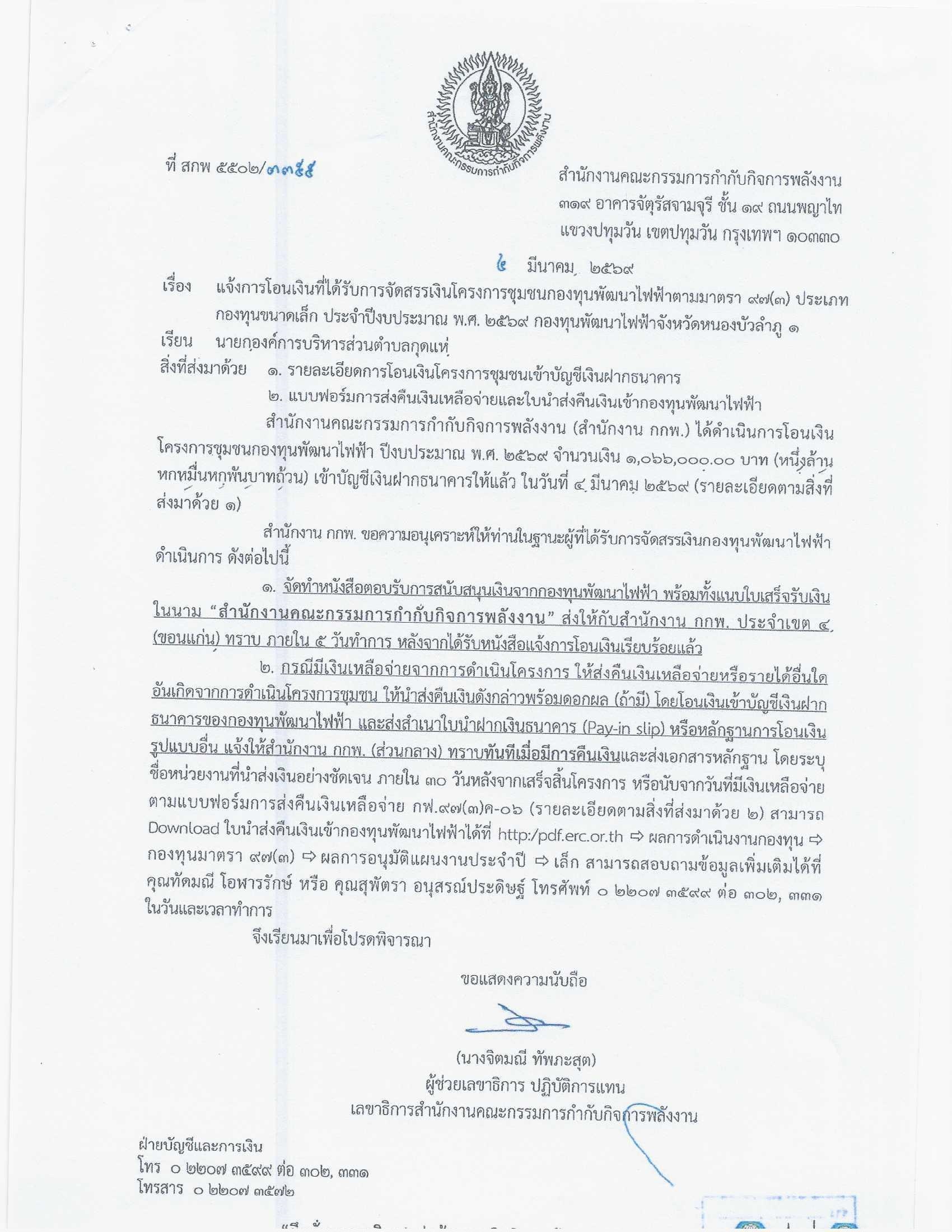 รับการจัดสรรเงินดำเนินงานโครงการชุมชนกองทุนพัฒนาไฟฟ้าจังหวัดหนองบัวลำภู