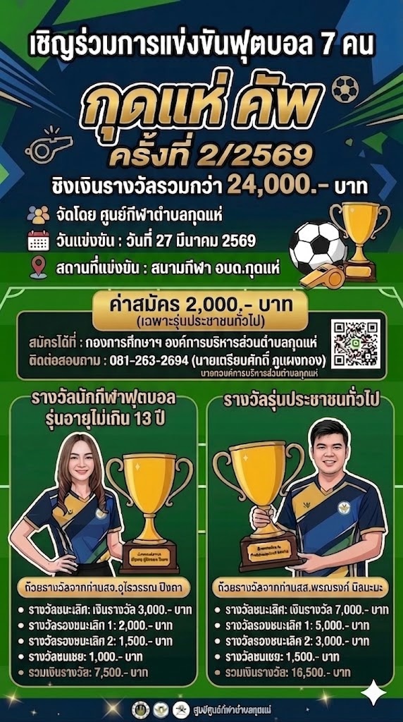 การแข่งขันฟุตบอล 7 คน "กุดแห่ คัพ" ครั้งที่2/2569